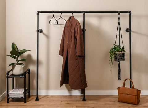Om het nog gemakkelijker te maken hebben wij een collectie doe het zelf bouwpakketten voor je samengesteld. Bepaal eenvoudig de breedte, hoogte en diepte en bestel direct online jouw eigen industriële trapleuningen, steigerbuis tafel, industriële kapstok, kledingrek, pergola enz.
