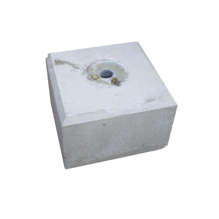 Betonpoer met afmetingen: 300 x 300 x 200 mm (lengte x breedte x diepte). Gewicht is 45 Kg per stuk. De buis kan direct in deze poer worden bevestigd en vastgezet met de inbusbout.