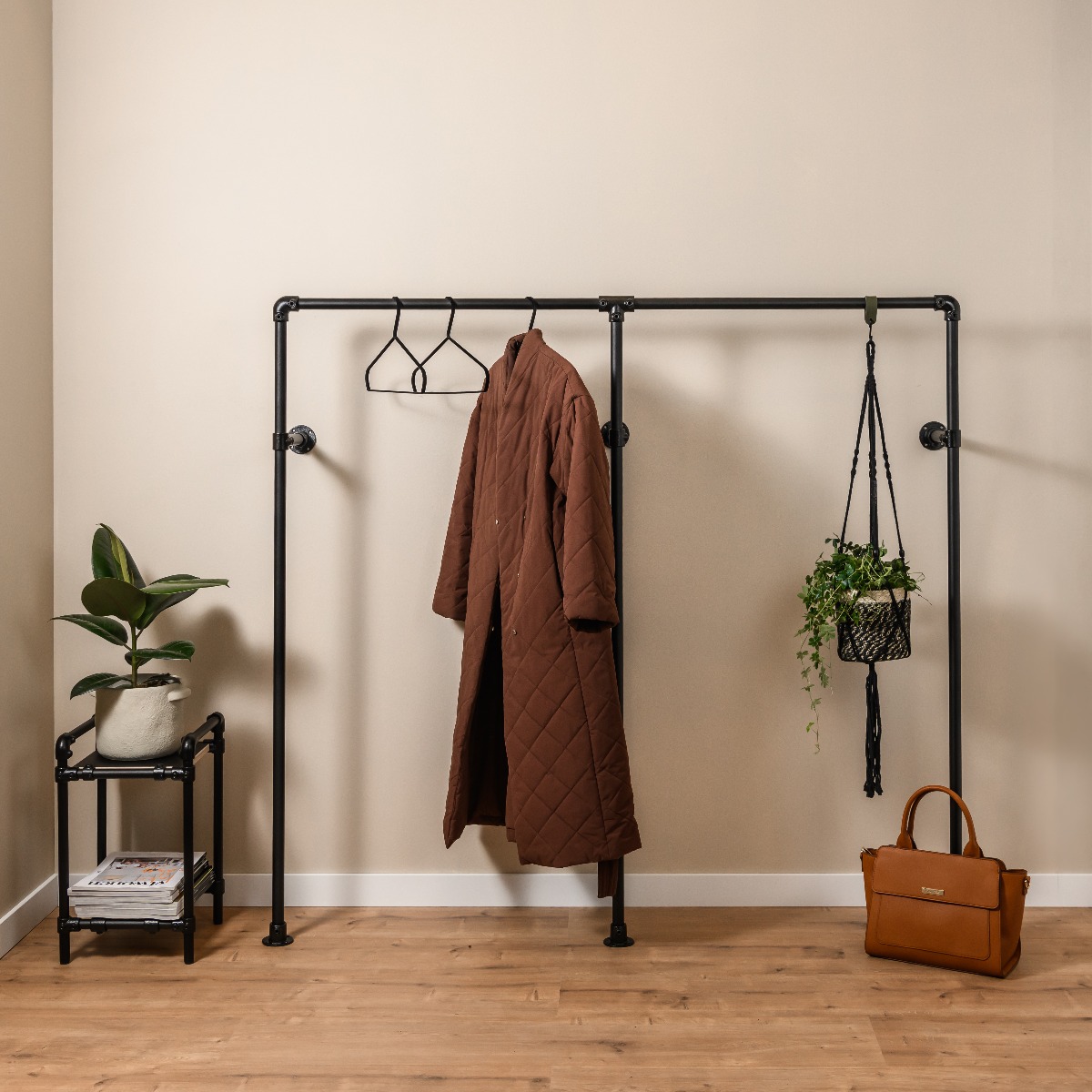 Of je nu een klein kledingrek voor aan de muur nodig hebt of een grote dubbele garderobe voor je complete collectie, een steigerbuis kledingrek biedt de perfecte oplossing. Met de mogelijkheid om zelf de afmetingen en stijl te bepalen via onze 3D configurator, creëer je eenvoudig een kledingrek dat perfect past bij jouw behoeften en interieur.