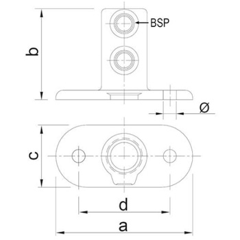 Deze flens kan worden gebruikt ter bevestiging van constructies aan de muur of aan de vloer. De flens is voorzien van 2 bevestigingsgaten. Diameter 26,9mm.
