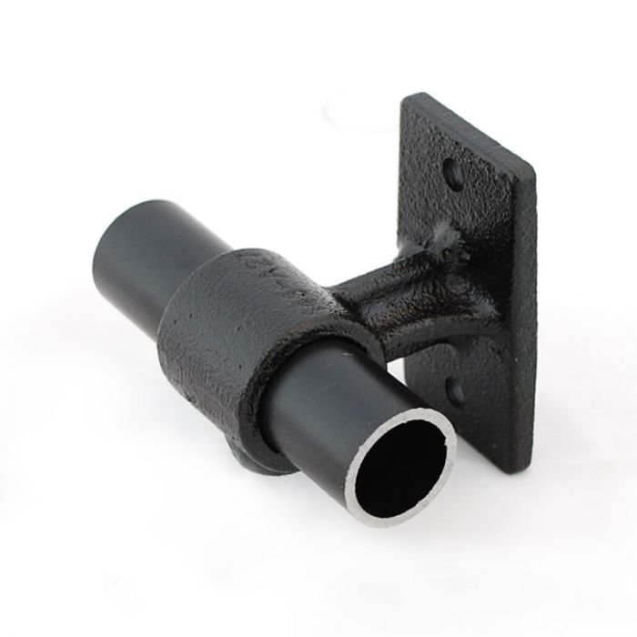 Deze buiskoppeling is ontworpen om buizen op een vaste afstand langs een wand te bevestigen. De steigerbuis gaat door de koppeling en kan niet in de koppeling doorverbonden worden. De voet is voorzien van twee bevestigingsgaten. Ook vaak toegepast bij gordijnroedes en spandoekframes. Geschikt voor steigerbuis diameter 26,9mm.