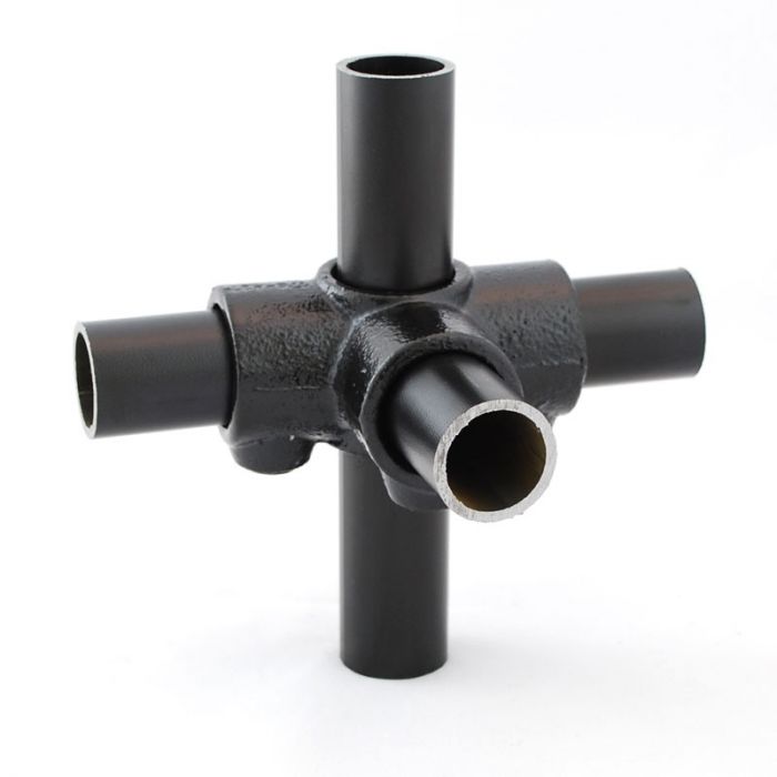 Dit type wordt vooral gebruikt om de verticale buis met horizontale buizen in vier richtingen te verbinden. De horizontale buizen staan dan in een hoek van 90° ten opzichte van de doorgaande, ononderbroken verticale buis. Diameter 26,9mm.