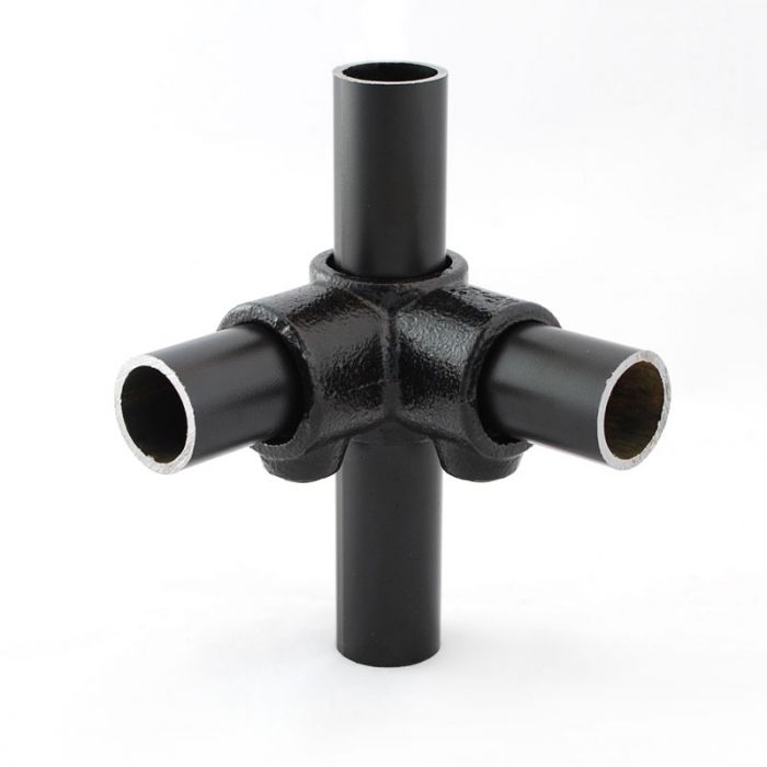 Deze buiskoppeling wordt vaak in combinatie met een Drieweg Kniestuk gebruikt, onder andere om een 90 graden hoekverbinding voor de tussenreling van een relingwerk te maken. De verticale buis gaat ononderbroken door de koppeling. Geschikt voor steigerbuis diameter 33,7mm.