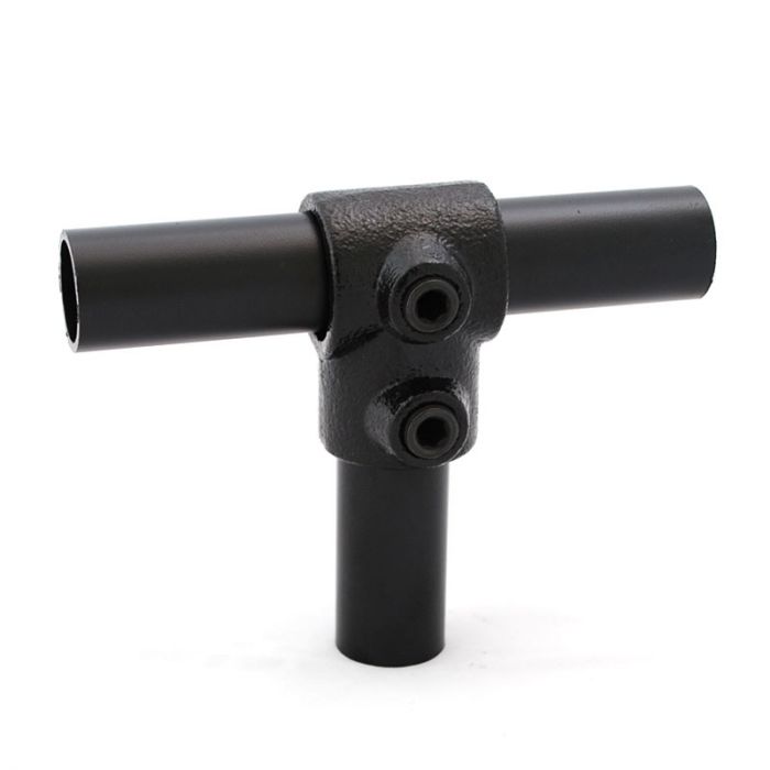Deze koppeling maakt een vaste verbinding van 90° tussen twee buizen. Als er twee buizen gekoppeld moeten worden in de doorgaande verbinding dan wordt een Lang T-Stuk gebruikt. Diameter 42,4mm.