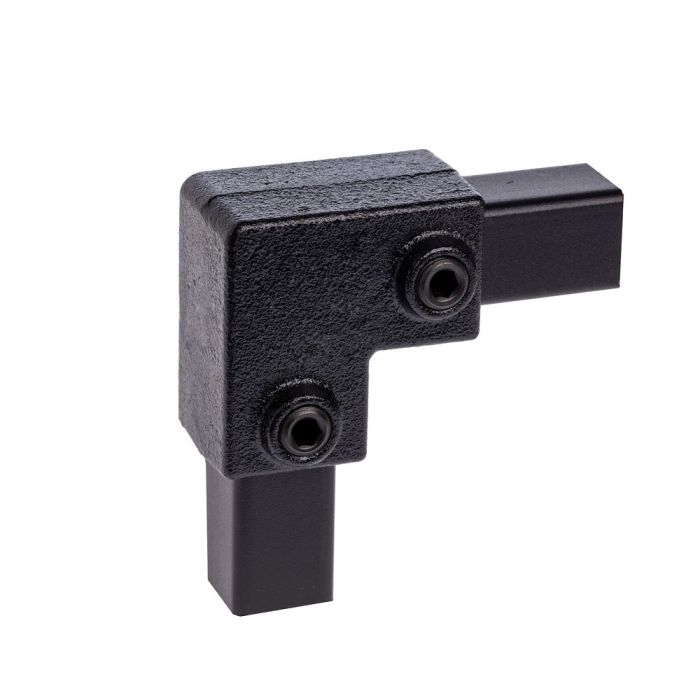 Dit is een elleboogverbinding van 90° die regelmatig gebruikt wordt als een eindverbinding voor de bovenste reling van een recht relingwerk. Ook veel toegepast in spandoekframes. Diameter 40mm.