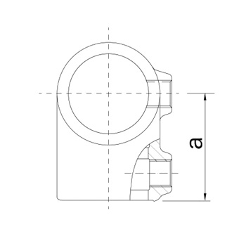Deze koppeling maakt een vaste verbinding van 90° tussen twee buizen. Als er twee buizen gekoppeld moeten worden in de doorgaande verbinding dan wordt type 104 (lang T-stuk) gebruikt. Diameter 42,4mm.