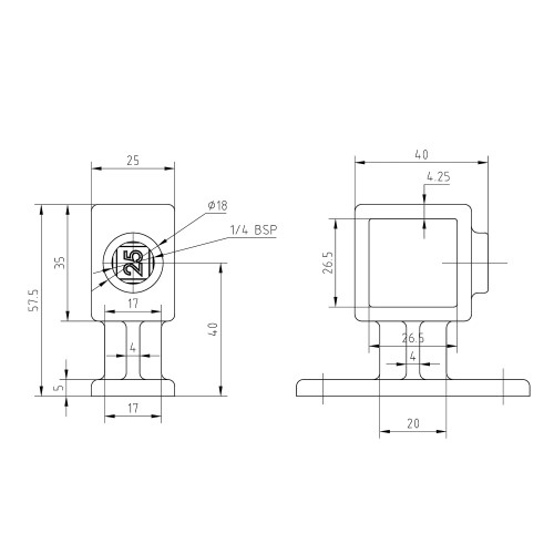 | Buisdiameter | 25 x 25 mm (vierkant) |