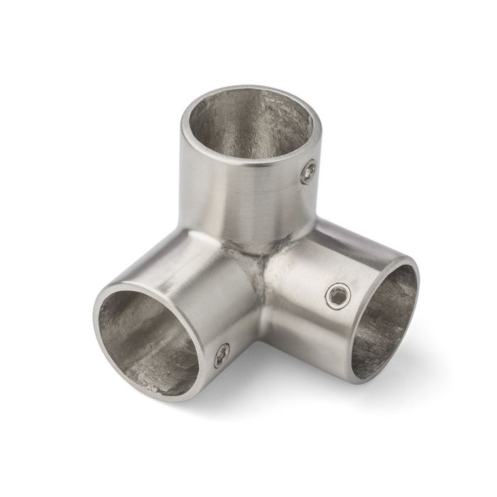 Deze 90° hoekverbinding wordt meestal gebruikt op de hoeken voor de bovenste reling van een relingwerk. Ze kan ook gebruikt worden voor de bovenste hoekverbinding bij bijvoorbeeld werktafels en andere rechthoekige constructies. Diameter 42,4mm.