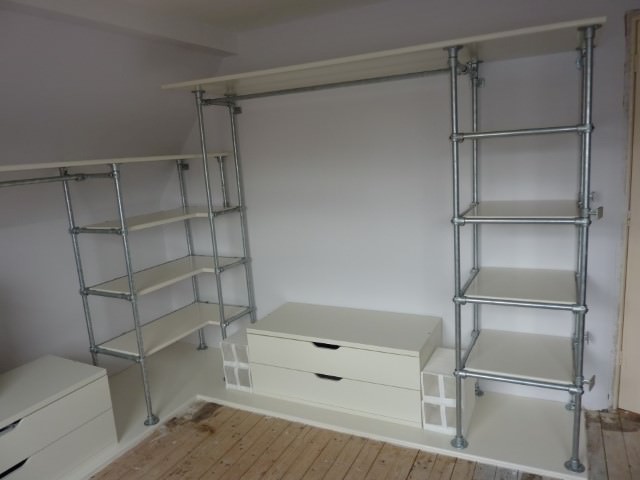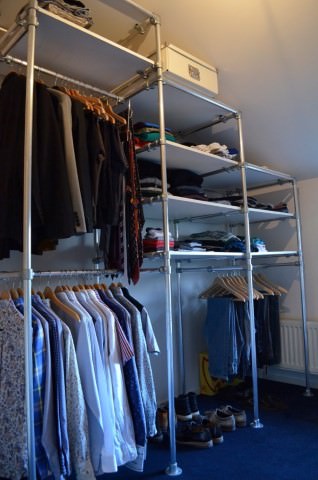 Stop je zoektoch naar jouw ideale inloopkast! Met steigerbuizen en buiskoppelingen creëer je eenvoudig zelf een unieke en superfunctionele inloopkast. Doorgaans worden de inloopkasten gemaakt van 26.9mm, 28.0mm of 33.7mm buis. Bij grotere diameters passen er namelijk geen kledinghangers meer overheen. Informeer ook naar onze ontwerpservice, waarbij wij je adviseren bij het samenstellen van jouw droomkast.