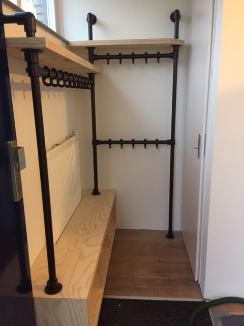 Op deze pagina vind je verschillende voorbeelden van zwarte steigerbuis kapstokken en kun je inspiratie opdoen. De steigerbuizen geven jouw kapstok een industriële look. Ook kun je ervoor kiezen om in de steigerbuis kapstok steigerhout te verwerken, wat een erg mooi effect geeft. Vragen of hulp nodig bij jouw kapstok ontwerp? Aarzel dan niet om contact op te nemen, wij helpen je graag verder!