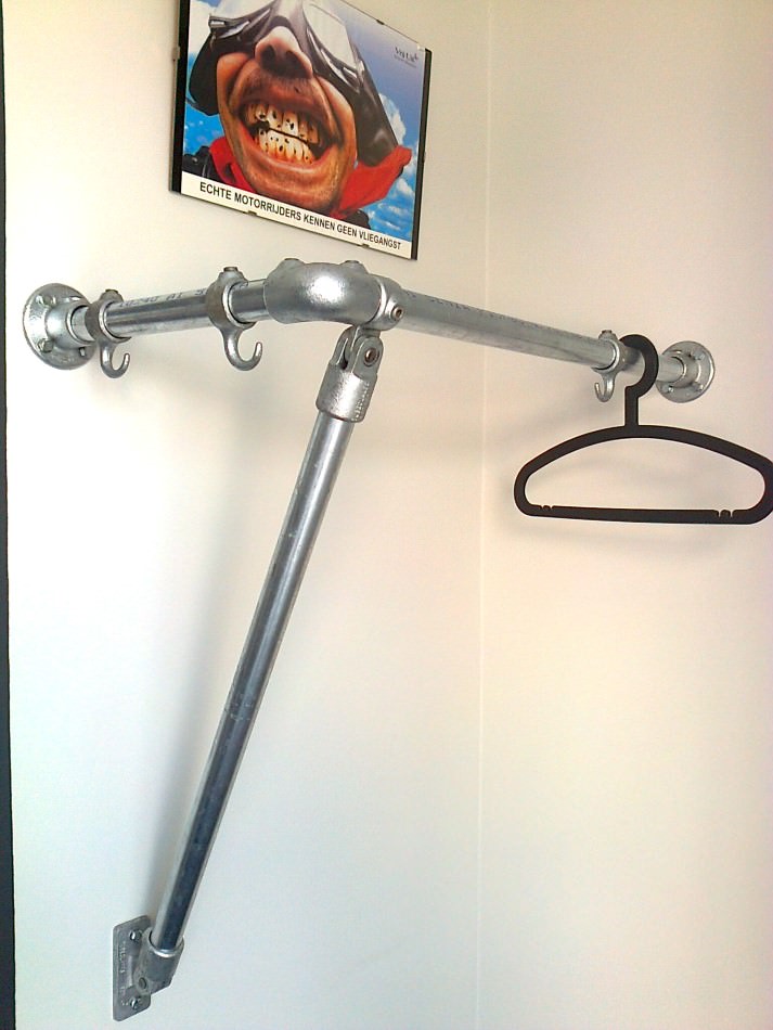 Waarom eindeloos zoeken naar die ene ideale kapstok? Maak deze nu zelf met steigerbuizen en buiskoppelingen ! Een steigerbuis kapstok is de eyecatcher in je huis en het mooie van steigerbuizen is dat je jouw ideale kapstok op de millimeter nauwkeurig helemaal naar eigen smaak kunt ontwerpen of direct bestelt. Of je nu op zoek bent naar een wand kapstok of een staande kapstok. Een industriële kapstok van steigerbuizen heeft een schitterende industriële uitstraling. Ook de stijlvolle zwarte steigerbuizen zijn erg populair en worden vaak voor kapstokken gebruikt.