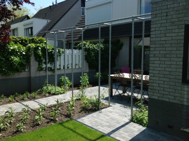 Doorgaans worden de pergola's gemaakt met onze gegalvaniseerd stalen steigerbuizen in de diameters 33.7 / 42.4 en 48.3 mm.